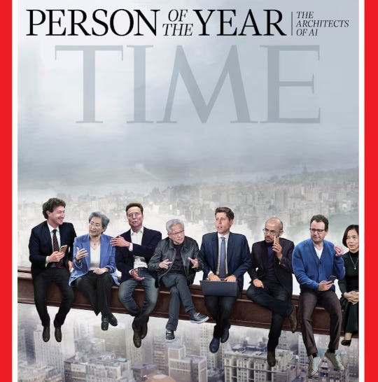Jensen Huang. The head of the world’s largest market company by market capitalisation was honoured alongside Mark Zuckerberg, Lisa Su, Elon Musk, Sam Altman, Demis Hassabis, Dario Amodei and Fei-Fei Li. Amazingly, Jensen Huang and Lisa Su (CEO of AMD) are first cousins once removed.