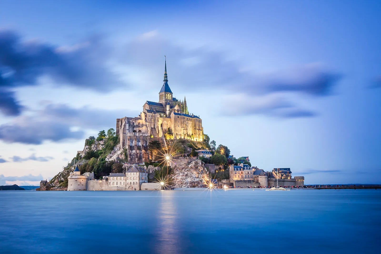 Mont-Saint-Michel. The Benedictine abbey was built between the 11th and 16th centuries, with some older parts dating back to the 10th century. At low tide, it is accessible on foot from the mainland.