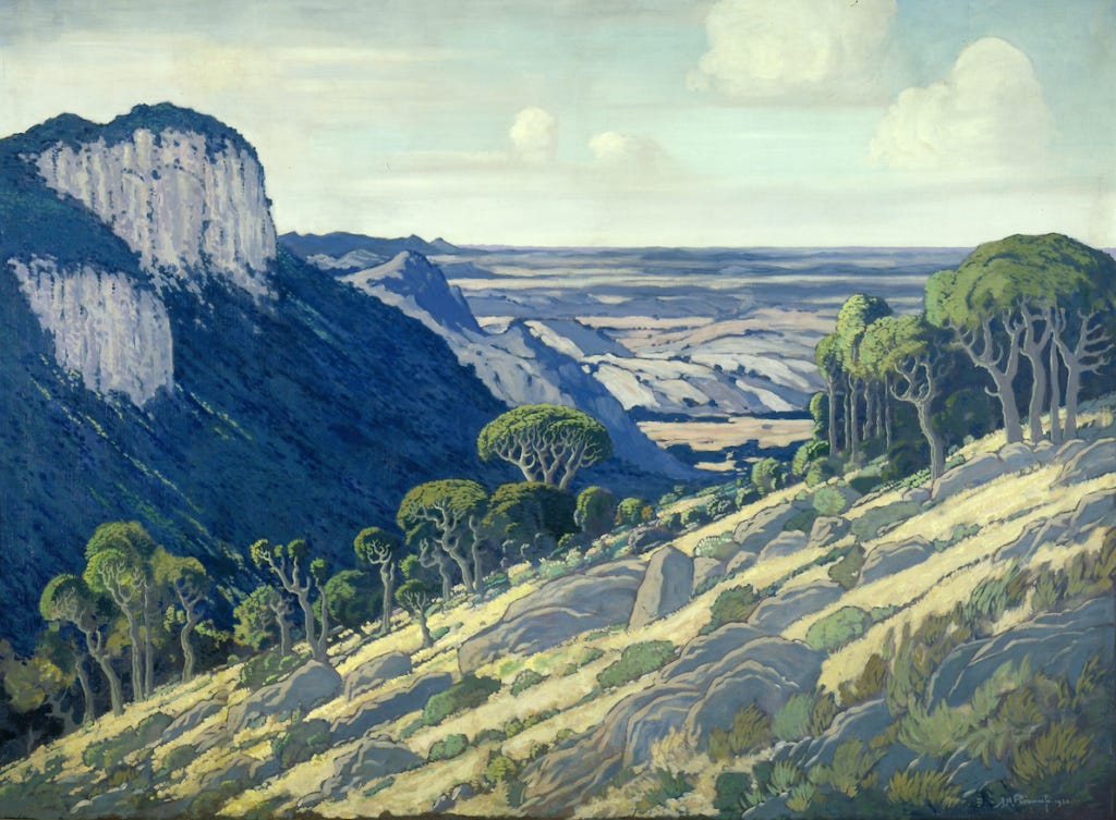 South Africa. N’tabeni means “place of the mountain” in Zulu. Jacob Hendrik Pierneef (1886-1957) is considered one of the finest South African painters, whose distinctive style was heavily influenced by the South African landscape. Much of his work depicts landscapes, typically in the Highveld, an inland plateau mostly in the provinces of Free State and Gauteng. Pierneef was the only painter to feature in a 2004 public vote of the 100 Greatest South Africans, which aired as a TV series in the country.